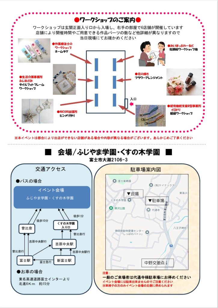 障害当事者やご家族、支援者等が大淵のふじやま学園・くすの木学園に集合 フリマやワークショップなど楽しい催し物がいっぱい。