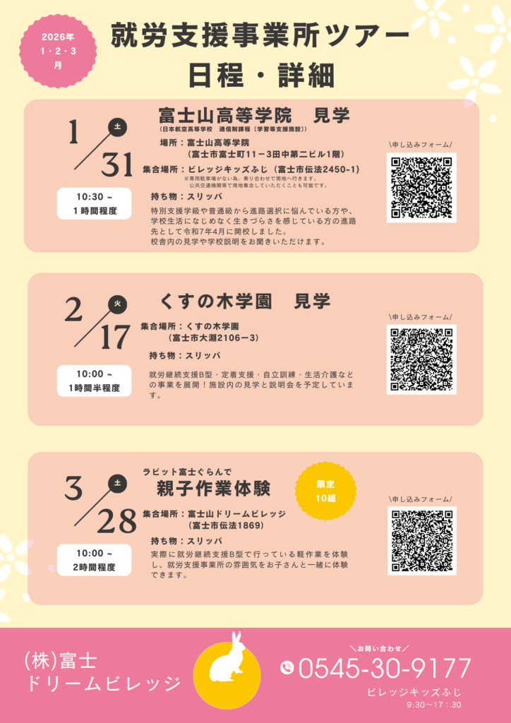 2026年1・2・3月就労支援事業所ツアー開催のお知らせです!
