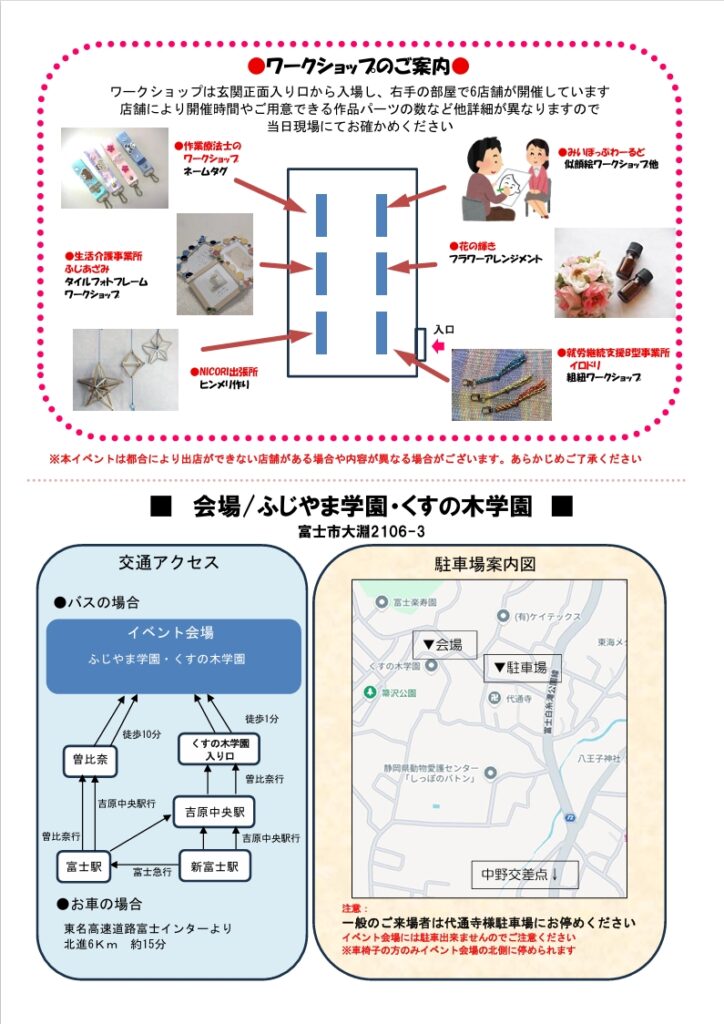 障害当事者やご家族、支援者等が大淵のふじやま学園・くすの木学園に集合 フリマやワークショップなど楽しい催し物がいっぱい。