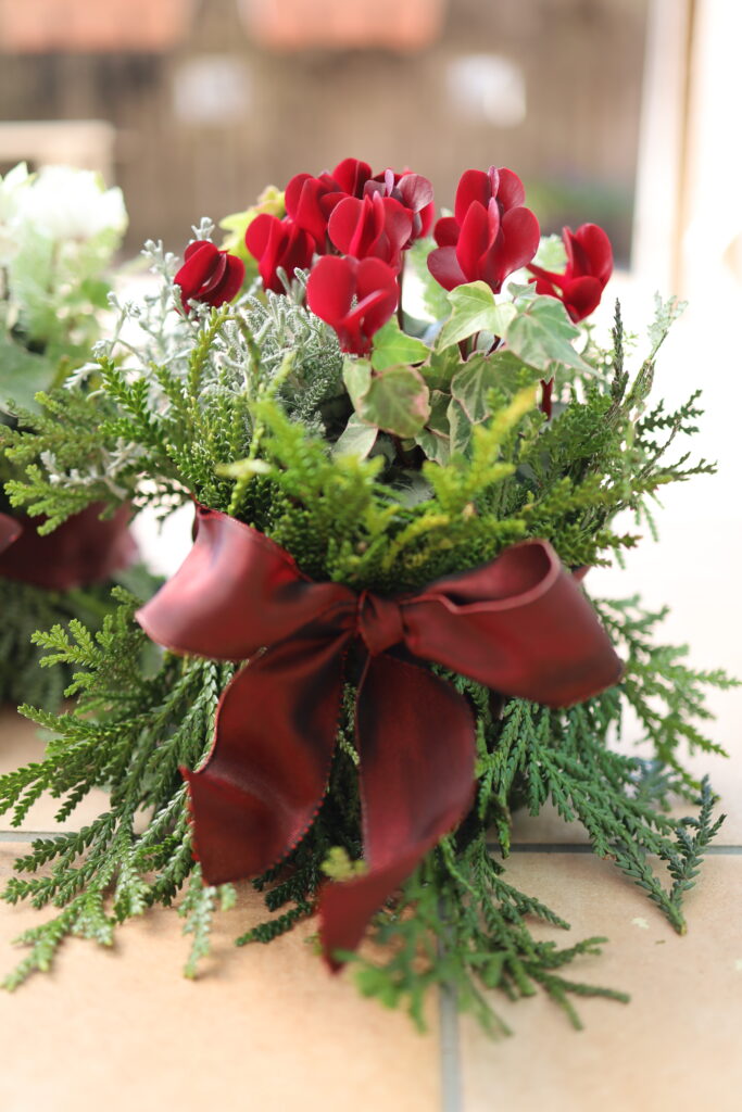 シクラメンと針葉樹をたっぷり使ってクリスマスの寄せ植えを作りませんか?